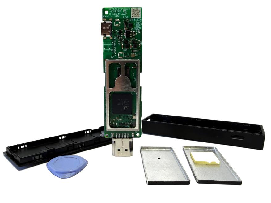 ОЗУ на плате выполнено в виде двух перемаркированных чипов по 512 МБ с логотипом производителя «Monster», внутренний накопитель KLM8G1GETF-B041(eMMC5.1) объёмом 8 ГБ. Над чипами установлены металлические экраны. Между процессором и экраном над ним установлена теплопроводящая прокладка. Каких либо дополнительных термоинтерфейсов к корпусу не предусмотрено. Как и у старшей модели на WiFi/Bluetooth модуле отсутствуют надписи по которым можно было бы его идентифицировать, антенны модуля выполнены в виде дорожек на плате.