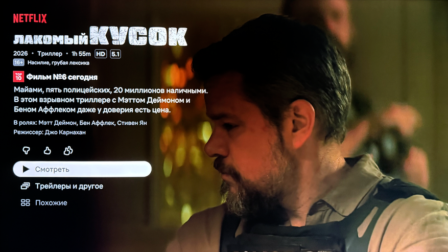 Отдельно стоит сказать про поддержку HDR10 и HLG в устройстве с разрешением 1080p. На практике это выглядит скорее как маркетинговый ход. В Netflix расширенный динамический диапазон недоступен, так как сервис привязывает его исключительно к 4K-потоку. На торрентах найти контент в Full HD с HDR практически невозможно — такие релизы просто не делают. Попытка запустить 4K-рип в надежде на даунскейл с сохранением цветопередачи (Tone Mapping) провалилась: стик попросту не «пережевывает» такой поток и выдает ошибку.