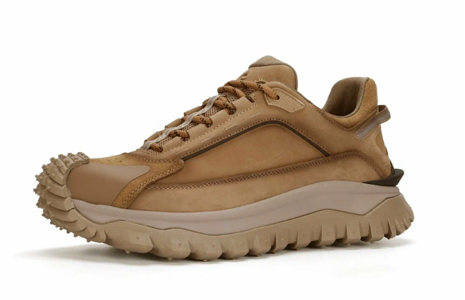 Это модель с характером, который считывается сразу. Объёмный силуэт, заметная подошва, контрастная палитра из белого, жёлтого и коричневого, всё это отсылает к классическим трейл-кроссовкам, но адаптировано под городскую среду.