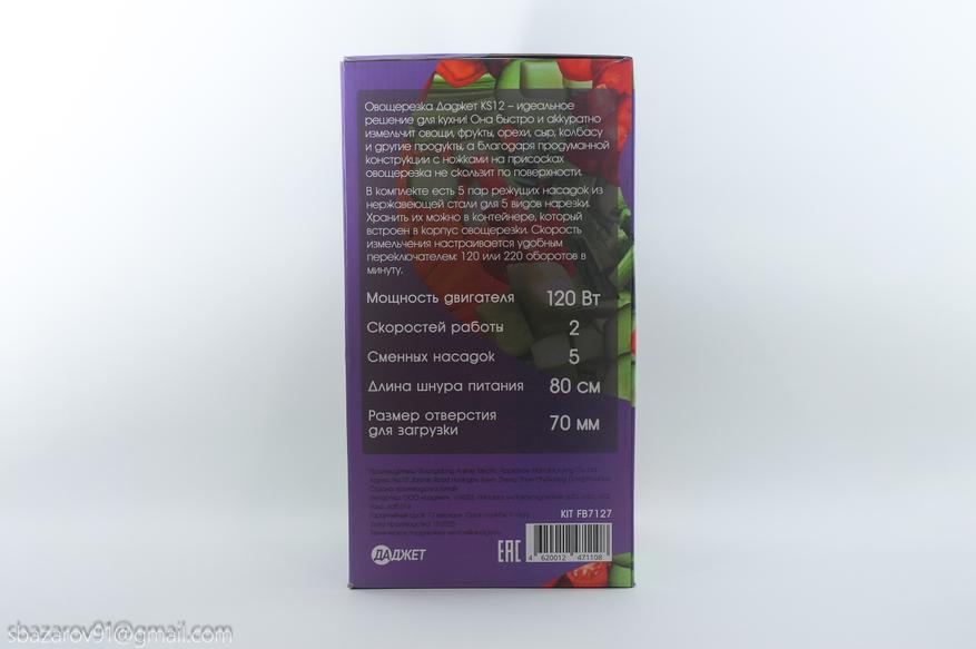 Свой заказ я оформлял на OZON, привезли в ПВЗ достаточно быстро, буквально за пару дней. Упаковка качественная и крепкая, внутреннее содержимое не пострадало. Сама товарная коробка овощерезки ДАДЖЕТ KS12 имеет цветную полиграфию с подробным описанием устройства на русском языке. Перед работой достаточно ознакомиться со всеми сторонами.