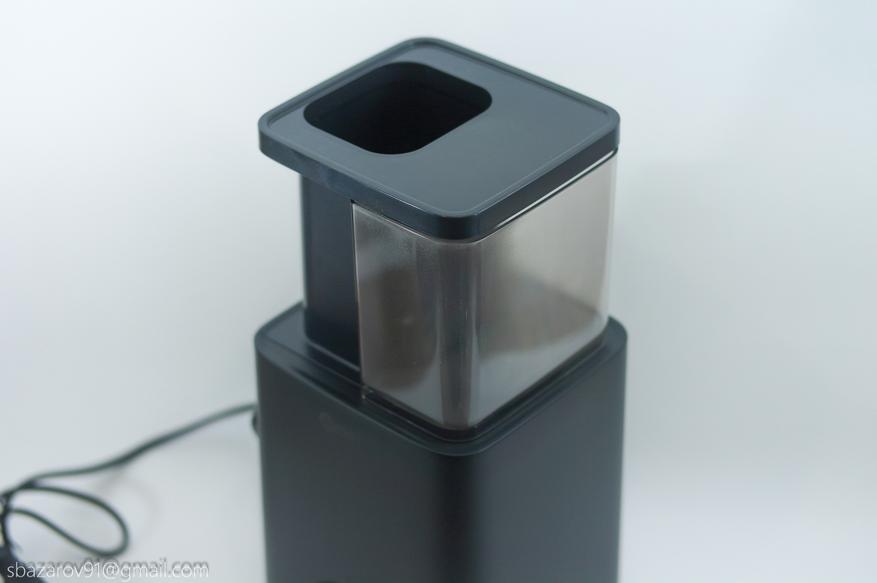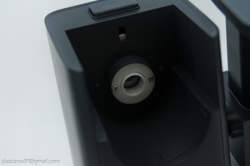 Еще один пластиковый отсек находится рядом с горловиной. Его задача — хранение сменных насадок.