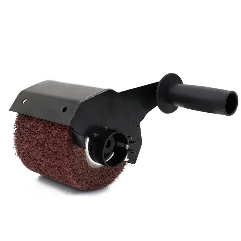 Щеточная полировальная насадка с цилиндрическим барабаном — компактный аксессуар для угловой шлифовальной машины, предназначенный для быстрой зачистки, шлифовки и удаления ржавчины с металлических, деревянных и пластиковых поверхностей. Конструкция включает прочный металлический корпус с защитным кожухом, предотвращающим разлёт искр и абразива, эргономичную рукоятку для удобного управления, а также быстрозажимной крепёж для надёжной фиксации на шпинделе УШМ. Абразивный барабан диаметром 100-120 мм (в зависимости от модели) выполнен из износостойкого нейлонового волокна с вкраплениями карбида кремния, что обеспечивает эффективную обработку даже твёрдых материалов. Подходит для подготовки деталей к покраске, снятия старого покрытия, сглаживания заусенцев и шероховатостей, отличается низким уровнем вибрации и длительным сроком службы при интенсивной эксплуатации.