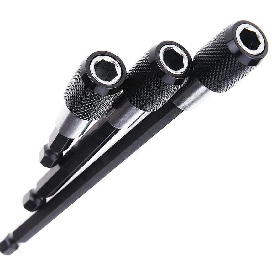 Адаптер который должен быть в комплекте любого шуруповерта или дрели. С его помощью существенно расширяются возможности инструмента при сверлении отверстий или работе с глубоко расположенным крепежом и в узких проемах. В комплекте входят три адаптера, различающихся между собой по длине: 60/100/150мм (можно заказать и по отдельности). Хвостовик шестигранник, насадка подходит для стандартных 1/4 бит. Удлинитель оснащен фиксирующей биту муфтой и магнитом. Насадка изготовлена из Cr-V (хром-ванадиевой) стали.
