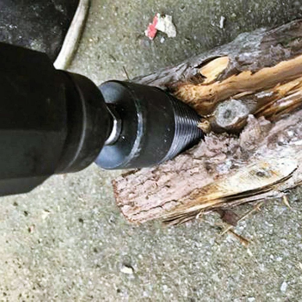 Забавный, но вполне полезный адаптер-колун для раскалывания дров. На странице товара есть несколько вариантов размеров: 32/38/42мм в диаметре. Самый большой идет в комплекте со сменными хвостовкиками. В принципе штука вполне рабочая для колки сухих дров при использовании мощного шуруповерта или перфоратора в режиме сверления.