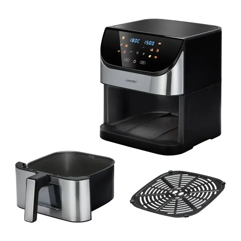 Аэрогриль с ёмкостью 6 литров и мощностью 1300 ватт, который предлагает восемь автоматических программ, включая жарку, запекание, выпечку, гриль и даже варку. Температура регулируется в диапазоне 60-200 градусов, есть функция поддержания тепла. Устройство оборудовано электронным термостатом и ЖК-дисплеем, а корзина квадратной формы совместима с посудомоечной машиной. Нескользящие ножки и звуковой сигнал по окончании готовки добавляют удобства в использовании.