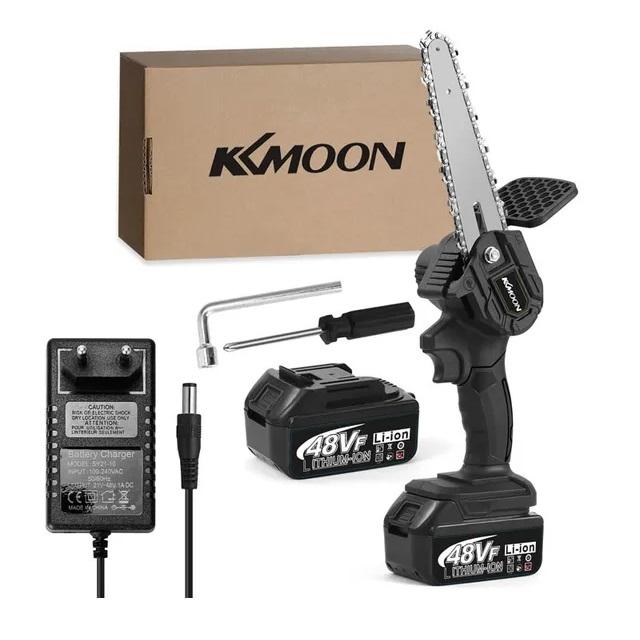 Пила от фирмы Kmoon прекрасно может подойти для универсального использования в домашнем хозяйстве. Устройство легко справится с обрезкой деревьев и кустарников, а также может измельчить садовые отходы. Пила имеет шину длиной 6 дюймов. Вес устройства составляет 1,3 кг, благодаря чему инструмент удобно сидит в руке.