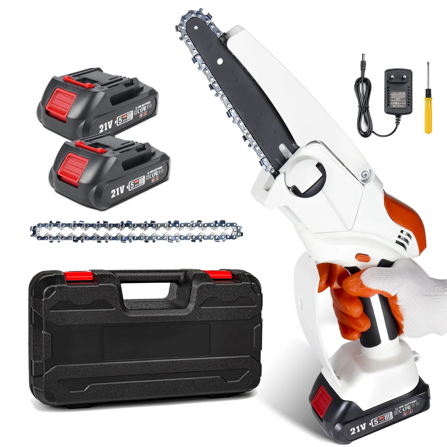 Аккумуляторная пила от фирмы Ludyvi также оснащена направляющей шиной с длиной 6 дюймов. Инструмент работает на базе бесщеточного двигателя, который обеспечит длительный срок службы устройства в целом. Комплектуется пила литиевым аккумулятором с емкостью 4000 мАч, что позволит использовать инструмент на протяжении длительного времени на одном заряде.