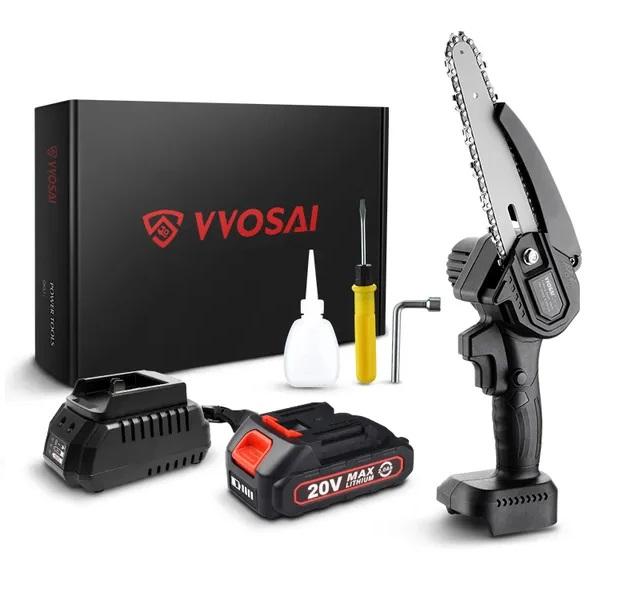 Маленькая высококачественная пила от фирмы Vvosal легко может резать довольно толстые ветки. Инструмент имеет нескользящую ручку, которая хорошо подходит для руки. Мини пила поставляется со съёмной литиевой батареей с емкостью в 2, 3, 4 Ач на ваш выбор.