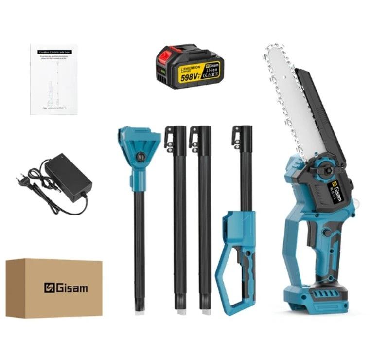 Пила Gisam с удлинителем может стать универсальной моделью для дачных и садовых участков. Пила может использоваться не только для работы «на земле», но и применяться для ухода за ветвями деревьев на высоте. Удлинитель состоит из трёх частей, что позволяет продлить рабочую зону пилы на 1,4 — 2,4 метра. Для некоторых это может стать неоспоримым плюсом, так как такая конструкция позволяет обрабатывать ветки на высоте, не прибегая к лестнице или стремянке.