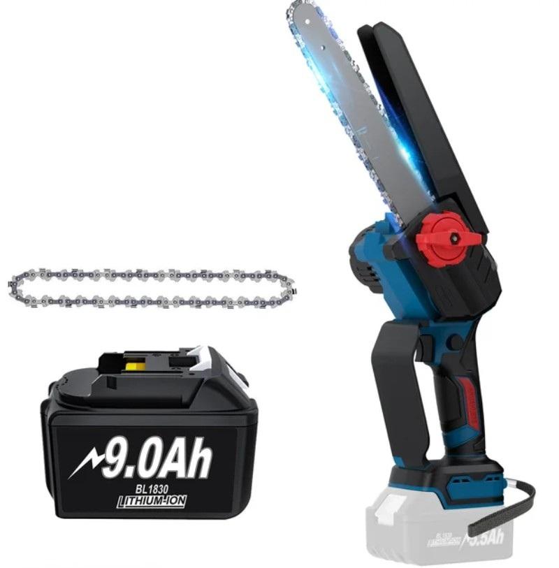 Это ещё один вариант пилы от фирмы Turpow с шиной на 8 дюймов. Конструкция с направляющей шиной длиной 8 дюймов подходит для обрезки веток, распиловки небольших брёвен и подготовки древесины для печи. Пила питается от литий-ионного аккумулятора с ёмкостью на 6 или 9 Ач, что повышает автономность инструмента. Два комплектных аккумулятора позволят использовать пилу практически непрерывно, попеременно меняя аккумуляторы.