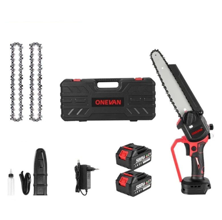 Пила Onevan представляет собой мощный инструмент среднего размера, ориентированный на более серьёзные задачи в саду или на даче. Длина шины 8 дюймов увеличивает глубину пропила, позволяя работать с более толстыми ветвями и брёвнами. Пила отличается мощным двигателем, который вместе с редуктором обеспечивают повышенную скорость вращения цепи до 10 м/с.