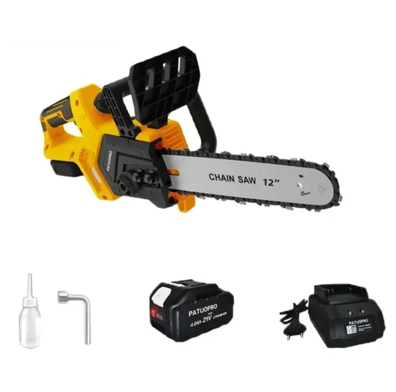 Это ещё одна пила от фирмы Patuopro с шиной на 12 дюймов. Это мощная беспроводная пила, оптимизированная под использование с аккумуляторами стандартного формата (Makita 18 В), что делает её идеальной для тех, кто уже использует совместимые батареи в других инструментах.