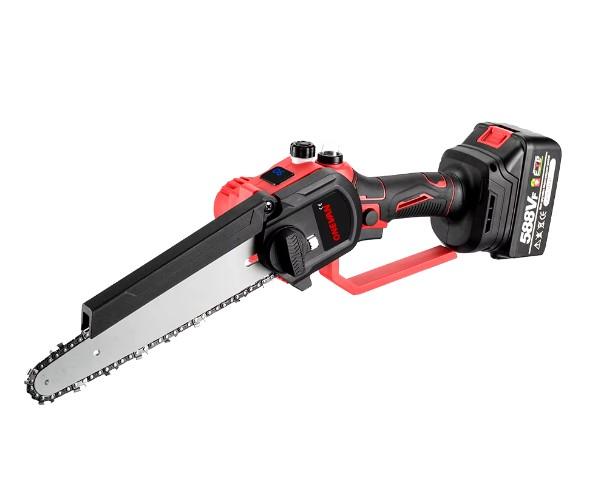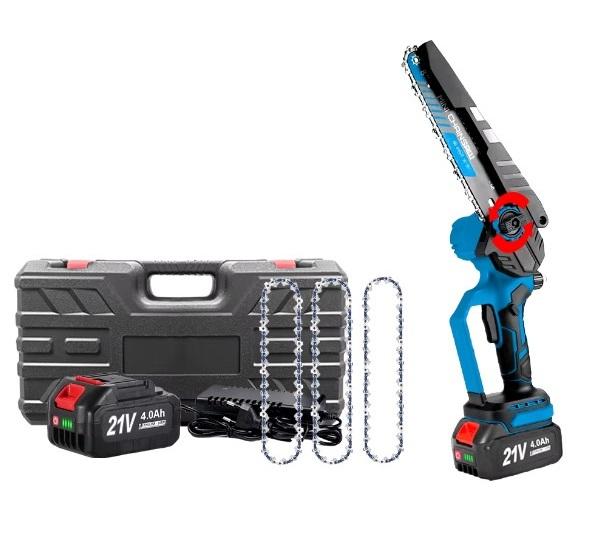 Стоит отметить, что данная пила уверенно справляется со стволами или ветками деревьев с диаметром около 10-12 сантиметров. В остальном конструктивно она мало чем отличается от вышестоящей модели. Стоит добавить, что для работы с совсем небольшими ветками или брусками, у продавца имеется вариант данной пилы с шиной на 4 дюйма.