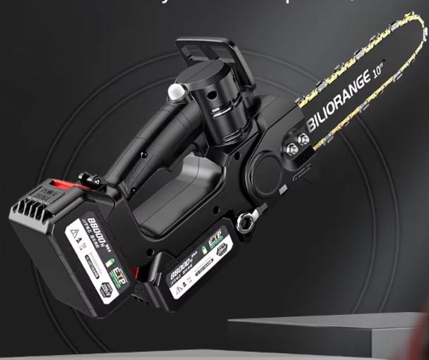 А это, на мой взгляд, более удачная модель пилы с шиной 10 дюймов. Основным отличием инструмента является наличие двух гнезд для аккумуляторов, то есть одновременно можно подключить два источника питания, тем самым продлевая время работы без подзарядки.