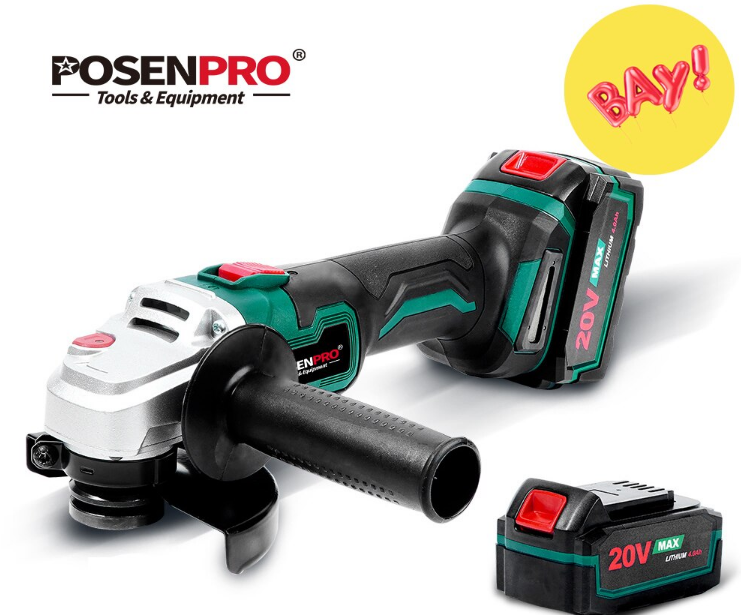 А далее в подборке следует уже полноразмерная УШМ для кругов с диаметром 125 мм от фирмы POSENPRO. Инструмент поставляется с аккумулятором на 20V и электроемкостью на 4000 мАч, также при заказе сразу можно заказать дополнительную батарею. На холостом ходу двигатель инструмента выдает 8000 об\мин, вес устройства составляет ровно 2 килограмма. Базовый аккумулятор при полной разрядке заряжается за 1 час. Как и у большинства магазинов представленных в этой подборке, есть возможность доставки товара с местного склада в РФ.