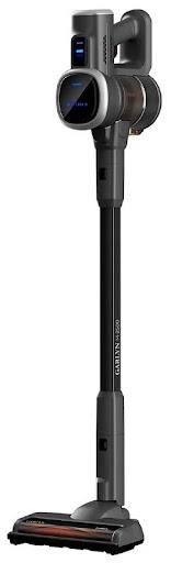 Компоновка мотора у этого устройства сверху, как и у остальных моделей в подборке. В комплекте 3 щётки (для пола, для мебели и универсальная широкая), щелевая насадка, напольная станция для зарядки. Вес устройства 1,6 кг. Один из самых лёгких в подборке. Габариты: 27,8х124,8х22,5 см.