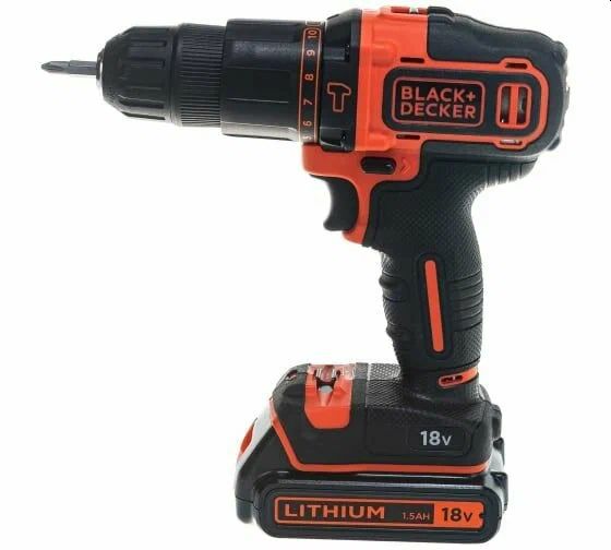 Модель шуруповерта BLACK+DECKER выделяется тем, что оснащена функцией удара, благодаря чему ему под силу справляться такими прочными материалами как бетон или камень, в отличие от безударных аналогов. Данный механизм способен выполнять до 21 000 ударных импульсов в минуту. С помощью шуруповерта BDCHD18KB можно сверлить отверстия в древесине до 25 мм в диаметре, в стали до 10 мм, а в бетонных элементах до 10 мм. Крутящий момент редуктор регулируется в диапазоне 10+1 ступеней и на максимуме способен выдавать до 40 Нм. Быстрозажимной сверлильный патрон совместим с битами имеющими шестигранные хвостовики, а также сверлами до диаметра в 10 мм. Максимальные обороты: 1400 в минуту.