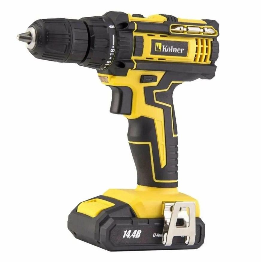 Еще один бюджетный вариант шуруповерта для периодического использования. Kolner KCD 14,4/2L поставляется с двумя батарейными блоками 14.4В с ёмкостью 2Ач. Двухскоростной редуктор может выполнять работу со следующими скоростями вращения вала (на холостом ходу): до 400 на первой и до 1450 оборотов в минуту на второй. Доступно 18+1 ступеней крутящего усилия, а максимальное его значение равно 27Нм. Диаметр сверл доступных для установки в патрон — не более 10мм.