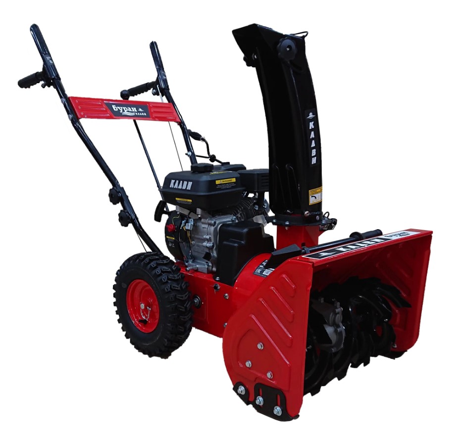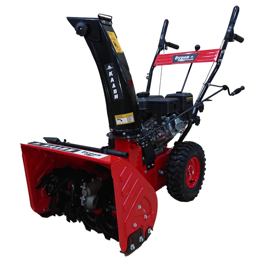 Снегоуборщик отечественной разработки оснащен двигателем Кадви 170F мощностью 7 лошадиных сил и объемом 212 кубических сантиметров. Этот силовой агрегат адаптирован к российским условиям эксплуатации и работает на бензине АИ-92. Конструкция предусматривает ручной запуск с широкой рукояткой стартера, удобной для хвата в зимних перчатках. Машина имеет ширину захвата 56 сантиметров и высоту 43 сантиметра, что делает ее оптимальной для очистки тротуаров и парковочных мест.