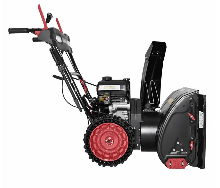 Компактные габариты и захват шириной в 61 сантиметр делают эту машину маневренной и простой для использования на участках со сложной геометрией. Шнек имеет с агрессивную форму в виде ледорубов эффективно и разрыхляет снежную массу, подавая ее в систему выброса. Несмотря на свои относительно небольшие размеры, агрегат весит 80 килограмм, что положительно сказывается на сцеплении колес с поверхностью и предотвращает подскакивание ковша на неровностях. Топливный бак объемом 3,6 литра обеспечивает достаточный запас хода для продолжительной работы. Управление снегоуборщиком интуитивно понятно благодаря эргономично расположенным рукояткам и рычагам, а система реверса позволяет легко вытягивать машину из сугробов.