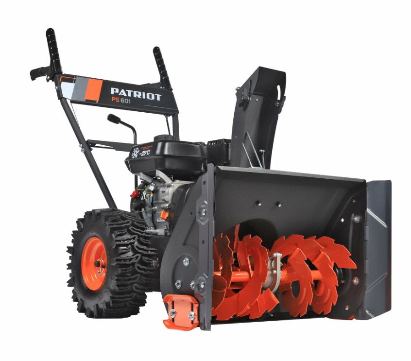 На пятой позиции PATRIOT PS 601 с шириной захвата 56 сантиметров и высотой 42 сантиметра, что удобно для уборки уже утоптанного снега. Двигатель 212 кубов, семь лошадиных сил, бак 3,6 литра. Пять передач вперёд, две назад, фара присутствует.