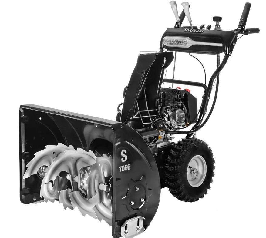 В Hyundai S 7066 заметна инженерная ориентация на стабильность в сложных условиях, когда-то рыхло, то подмерзло, а температура резко падает. Четырехтактный двигатель ICW210 с верхним расположением клапанов имеет объем 208 см3³ и мощность 7 л. с. Производитель прямо указывает облегченный запуск до минус 30 градусов, что важно для северных регионов.