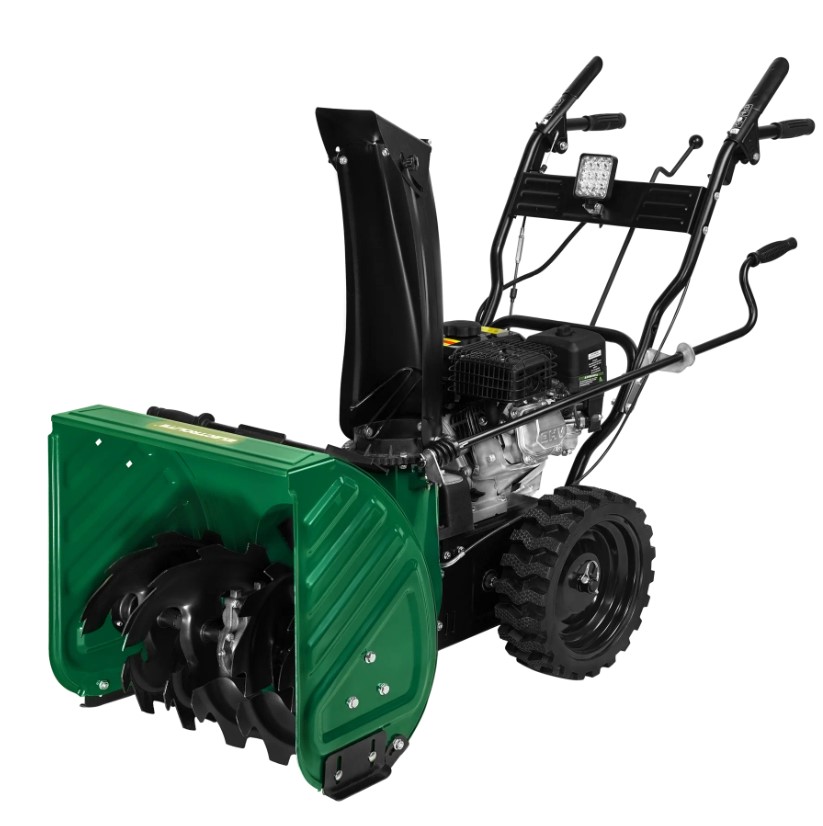 Двигатель объемом 209 см3 развивает 7 л. с., а запуск возможен как с электростартера, так и вручную, что удобно при хранении в холодном гараже. По геометрии ковша указываются 560 мм по ширине и 520 мм по высоте, то есть машина рассчитана на сугробы выше привычного уровня.