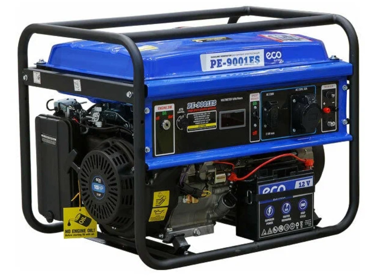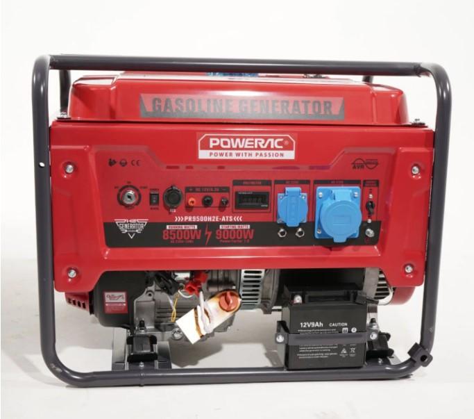 Далее Powerac PR9500H2E-ATS, который выдаёт до 9 кВт, поддерживая ручной, электрический и автоматический старт с АВР. Две розетки 220 В и клеммы 12 В повышают универсальность подключения.