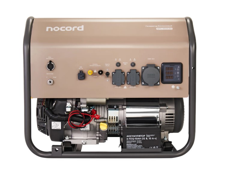 Напоследок самая мощная модель подборки: номинальная 10 кВт, пиковая 11 кВт. Подключение возможно через розетки 220 В или клеммы 12 В. Поддерживаются автозапуск, ручной и электрический старт.
