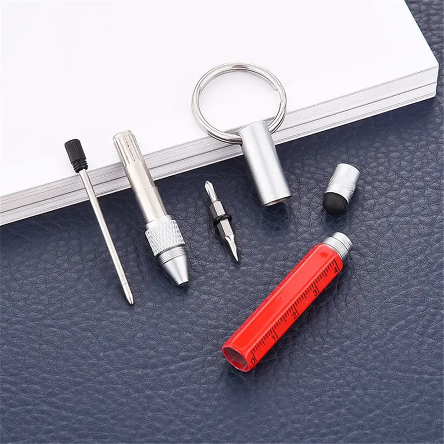 Следующий брелок предлагается на Aliexpress в 5 расцветках и может поставляться как с карабином, так и с обычным кольцом для ключей. Брелок весит 27 г и представляет собой мультитул, который совмещает в себе миниатюрную шариковую ручку, крестовую и плоскую отвертки, а также стилус для сенсорных дисплеев.