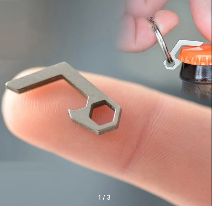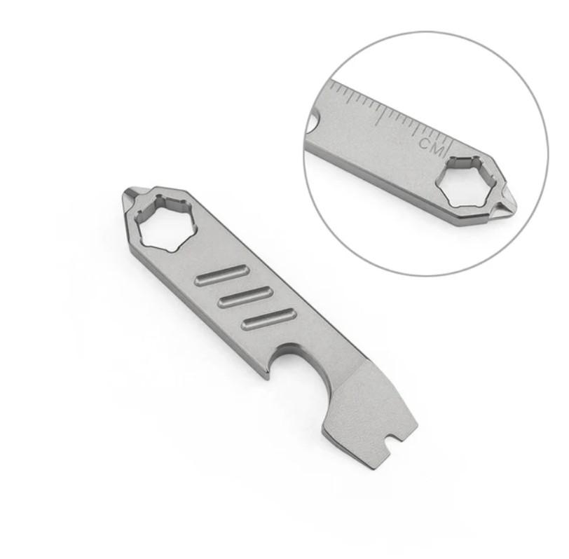 Ну, а это уже более интересная, на мой взгляд, и многофункциональная открывалка, которая имеет дополнительный инструмент. Изначально стоит сказать, что изделие выполнено из титанового сплава.