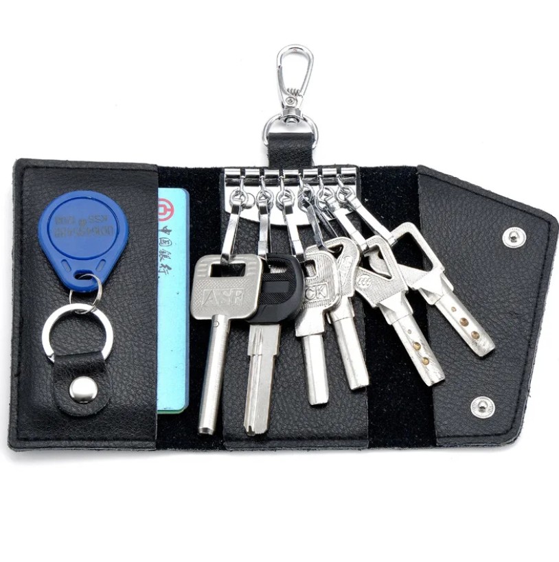 Ключница раскладывается на три части, в ней есть отсек для ключей и отсек для кредитных карт с креплением для домофонного ключа-таблетки. Третья часть также имеет карманчик, но в него ничего существенного положить не получится. Модель продается в большом количестве расцветок на выбор.