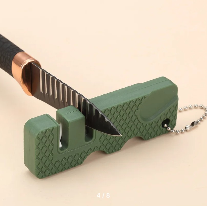 Ну, а если вы захотите поправить лезвие вашего карманного ножа, тогда можно всегда носить с собой точилку-брелок. Точилка изготовлена из карбида вольфрама, что делает её сверхтвёрдой и долговечной.