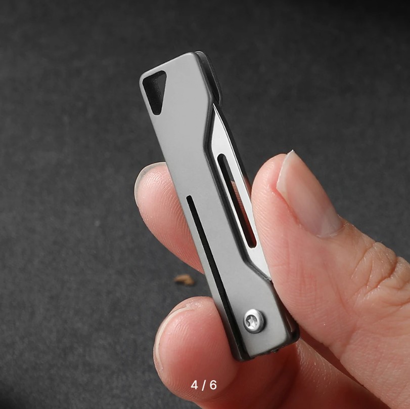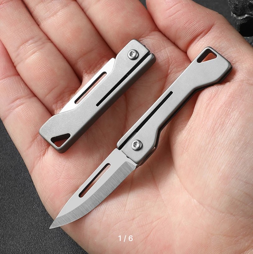 Этот мини-нож имеет рукоятку из титанового сплава, а лезвие выполнено из стали 5Cr13Mov. Сталь лезвия улучшена молибденом и ванадием, а также она имеет до 0,55 % углерода и около 13% хрома. Твёрдость лезвия составляет 55-57 HRC.