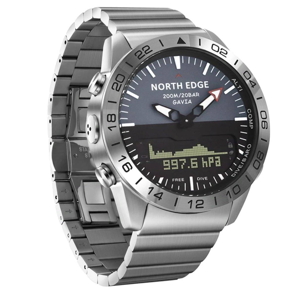 Подойдет модель для дайвинга. Поэтому при помощи часов вы также можете контролировать изменения температуры и давления, настроить сразу несколько часовых поясов, а также всегда быть в курсе о текущей дате. В темноте циферблат подсвечивается. Модель показывает высоту, выступает в качестве компаса.
