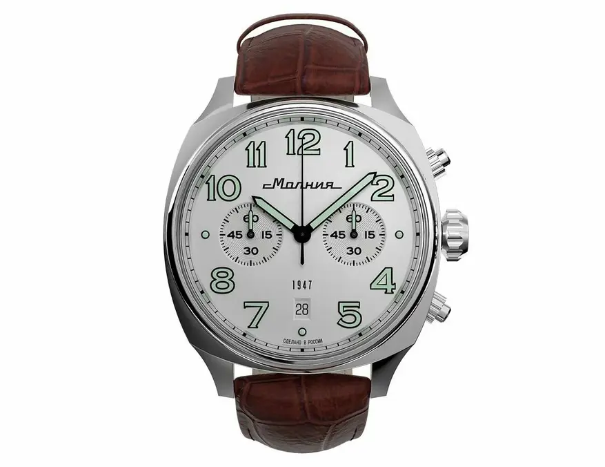 В позиции «4 часа» располагается маленькое окошко даты, отображающее число месяца.