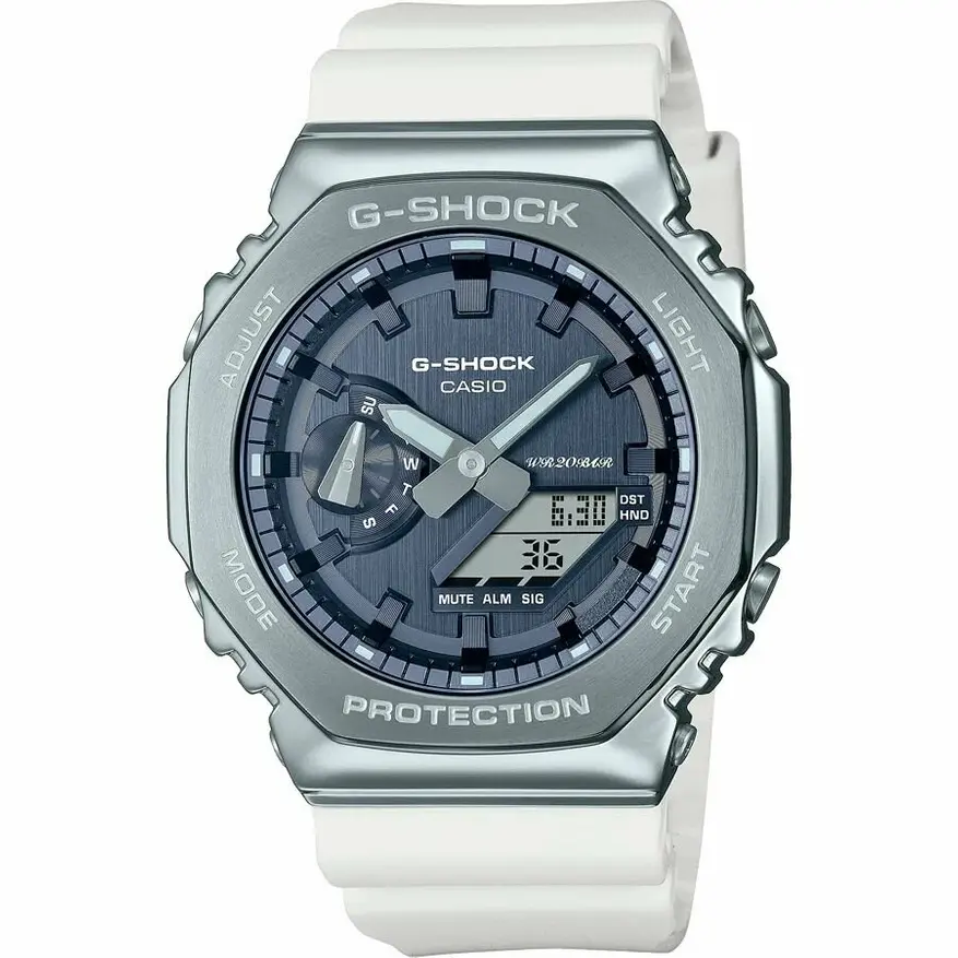 Комбинированный аналогово-цифровой циферблат надёжно защищён минеральным стеклом. На циферблате гармонично расположены центральные часовая и минутная стрелки, а также цифровые индикаторы.