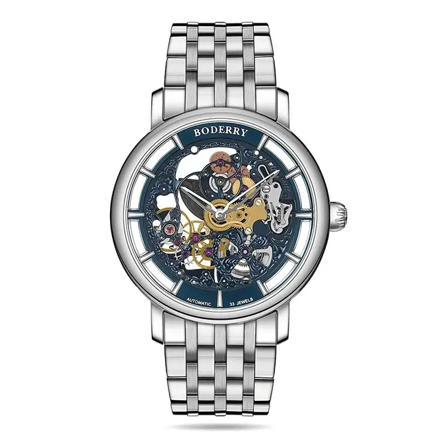 Механизм автоматический: ротор заводит пружину при движении руки. Центральные часовая, минутная и секундная стрелки, а также метки часовых позиций покрыты люминесцентным составом для чтения показаний в темноте.