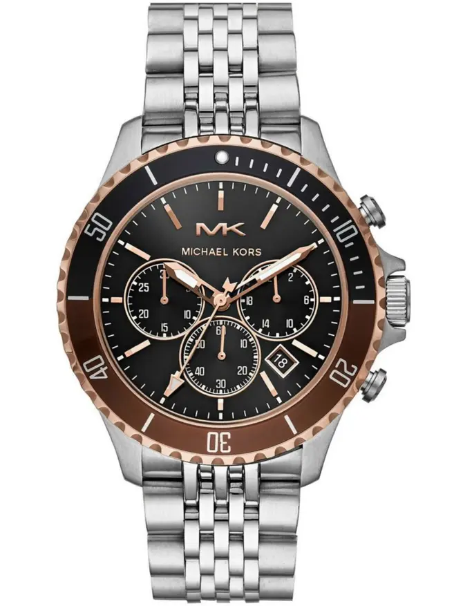 Ширина корпуса указана как 42 мм. Материал модели — нержавеющая сталь с полным покрытием из PVD. Браслет изготовлен из высококачественной нержавеющей стали и имеет гладкую поверхность.
