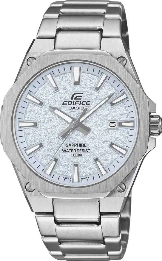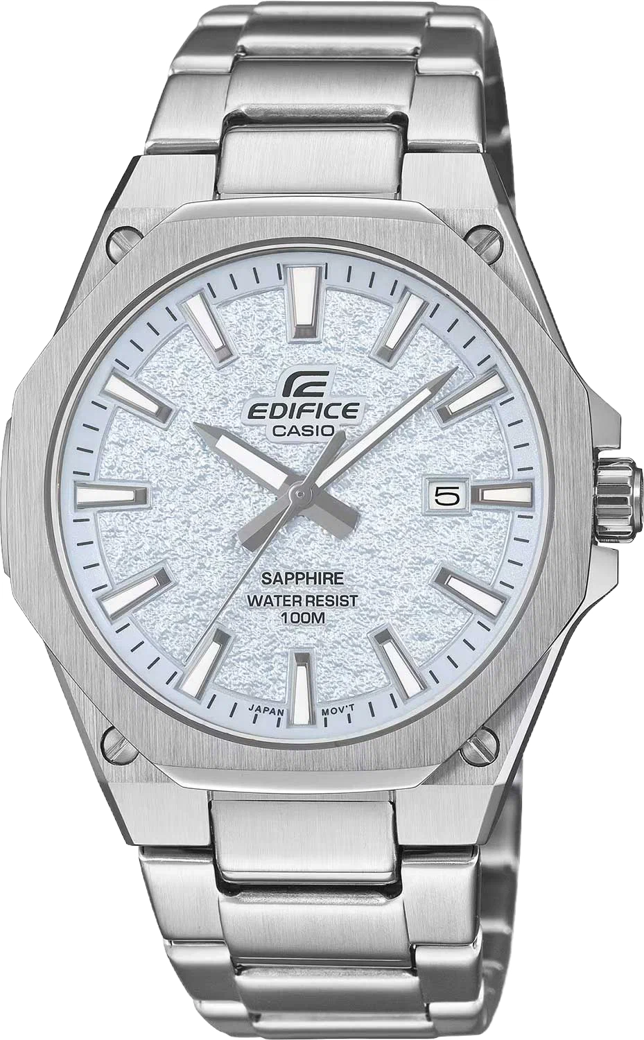 Внешне часы выглядят как круг. Циферблат аналоговый, синего цвета с матовой текстурой. Для индикации используются арабские цифры и стрелки, на которые нанесён люминесцентный состав. Стекло — сапфировое.