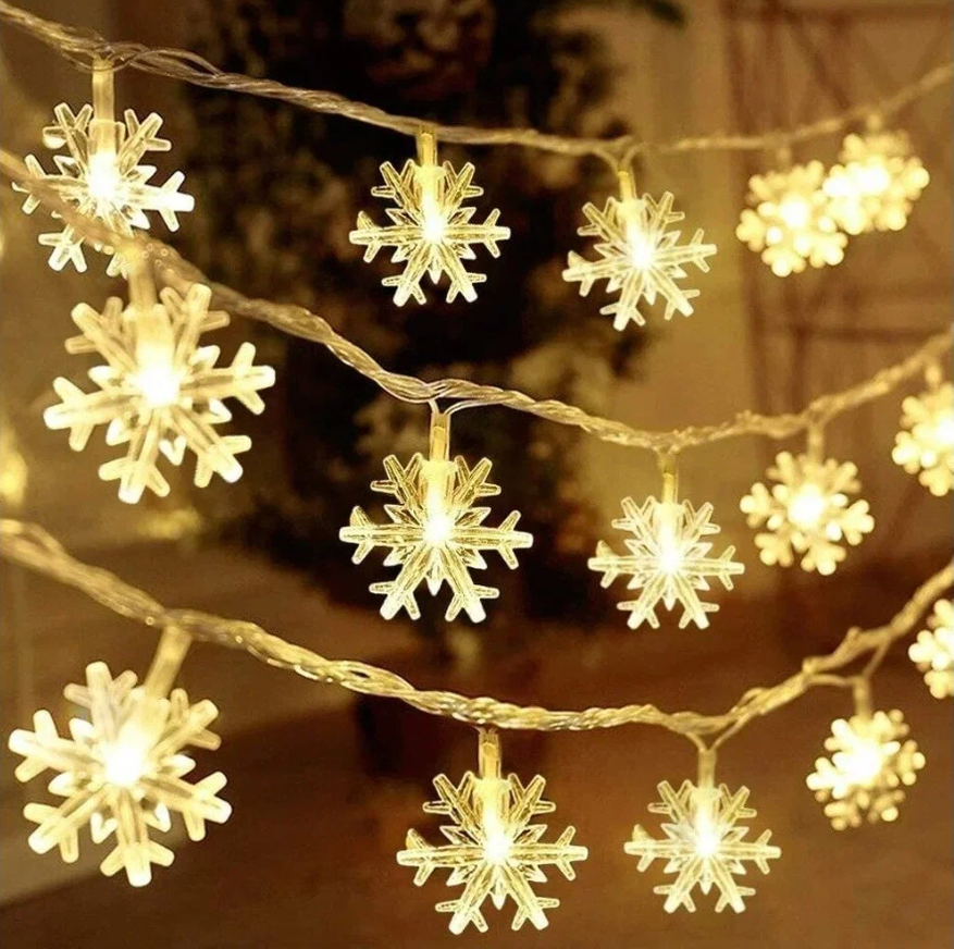 На последнем месте гирлянда в виде снежинок, которая имеет защиту от влаги по типу IP 20, что позволяет её использовать как в помещении, так и в придомовых пристройке с умеренной влажностью. Гирлянда имеет восемь различных режимов свечения и встроенный контроллер. Общая длина гирлянды составляет 1,3 метра. Такое украшение отлично подойдёт для формирования атмосферы в интерьере, а также позволит разнообразить повешенные на ёлку игрушки.