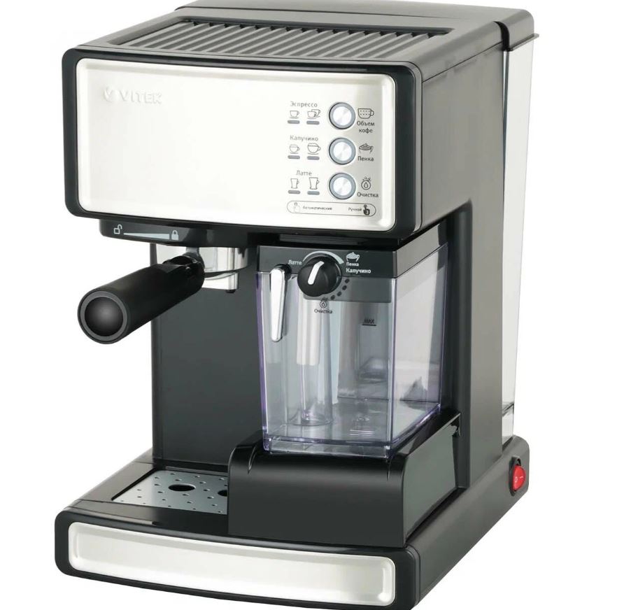 Этот кофейный аппарат с мощностью 1238 Вт не просто готовит ароматный эспрессо, превосходный латте или капучино с пенкой, он превращает ваш дом в уютную кофейню. В кофеварке есть всё, что нужно для комфортного приготовления напитков: понятное механическое управление, удобный съемный контейнер для воды, встроенный капучинатор и возможность регулировки плотности молочной пенки по вашему вкусу.