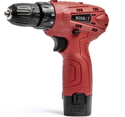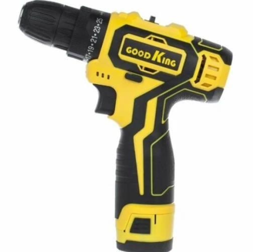 Односкоростной дрель-шуруповёрт. По диаметру патрон от 1 до 10 мм. На холостом ходу вращается при 600 об/мин (макс.). Момент вращения 32 Н·м (макс.). Стоит недорого, не перегружен лишними функциями, аккумуляторы подходят к различному китайскому инструменту типа мини-болгарок.