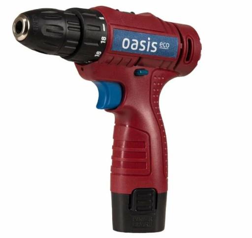 Односкоростной дрель-шуруповёрт. По диаметру патрон от 0,8 до 10 мм. На холостом ходу вращается при 550 об/мин (макс.). Момент вращения 30 Н·м (макс.). Быстрая зарядка, конструкция продуманная, качественная работа. Крутит отлично, саморезы больше 90 мм с некоторой натугой, меньше — спокойно по самую шляпку. Из минусов: сложно найти батарею на замену.