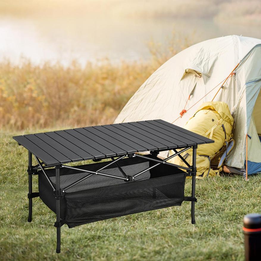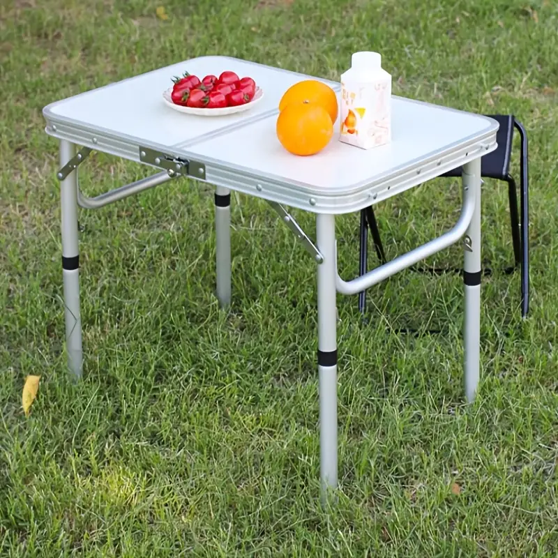 Стол выполнен из алюминиевого сплава, размер 60x40x50 см, вес 2,3 кг. Столешница устойчива к влаге, материал не подвержен коррозии. Конструкция складная, возможна эксплуатация в помещении и на открытом воздухе. Стол можно использовать для размещения посуды, работы с документами или ноутбуком. При хранении и транспортировке стол занимает мало места.