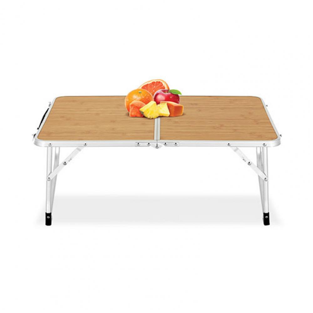 Стол сочетает алюминиевый каркас с бамбуковой столешницей из древесноволокнистой плиты средней плотности. Размеры рабочей поверхности 60x40x25 см, в сложенном виде 30x40x4 см, толщина столешницы 1 см. Конструкция складная, присутствуют боковые ручки. В комплекте сумка для хранения и транспортировки. Размеры и цвет могут незначительно отличаться из-за особенностей производства.