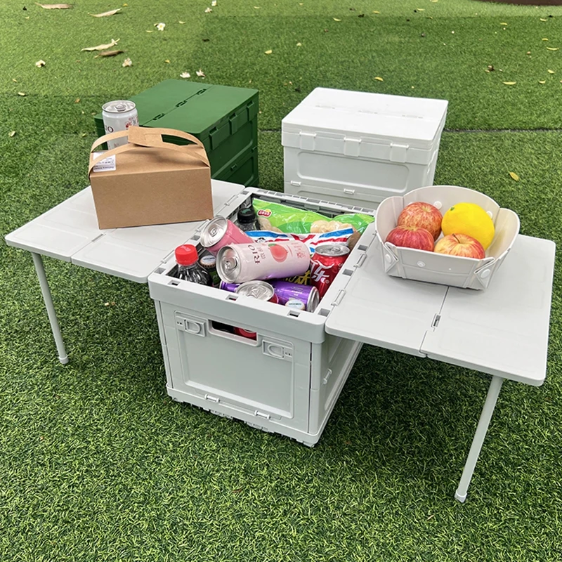 Стол пластиковый, конструкция 2-в-1: используется как ящик для хранения или как стол. Размеры разложенного стола 78,1x32,9x24,5 см, сложенного — 34x26,6x8,6 см. Стол оснащён противоскользящими канавками на поверхности. Предназначен для кемпинга, рыбалки, работы в мастерской и хранения оборудования. В комплект входит один стол/ящик.