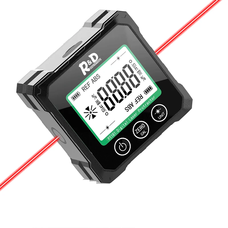 Прибор с полным диапазоном измерения 360°, предназначенный для быстрого контроля наклона и выверки углов в любых условиях. Оснащён большим ЖК-дисплеем с подсветкой и функцией автоматического поворота изображения при переворачивании прибора. Поддерживает как абсолютное, так и относительное измерение с возможностью установки произвольного нуля.