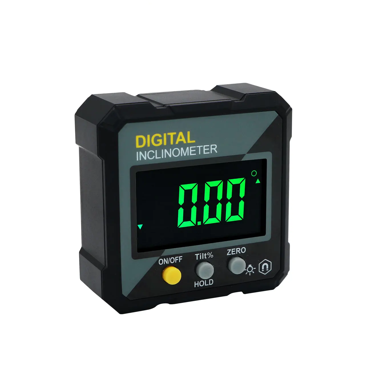 Миниатюрный цифровой угломер с магнитным основанием и подсветкой дисплея. Устройство предназначено для измерения наклона в диапазоне 4x90° (или 2x180°), с точностью +-0.2° и разрешением до 0.05°. Поддерживает как абсолютное, так и относительное измерение, позволяет зафиксировать показания на экране.