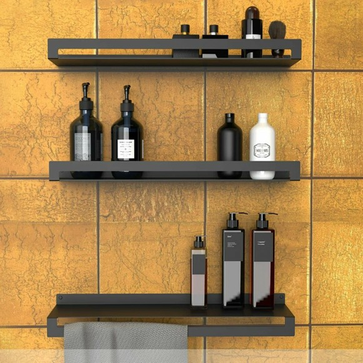 Комплект из трёх полочек, одна из которых дополнена полотенцедержателем, освежат интерьер ванной комнаты в стиле модерн, и сэкономят пространство.